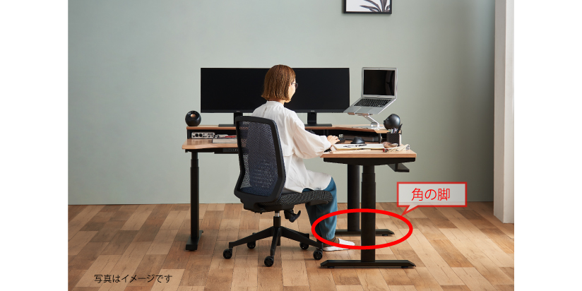 また、角の脚は椅子に当たらない位置にあるため角の対して斜め向きに作業することもできます。