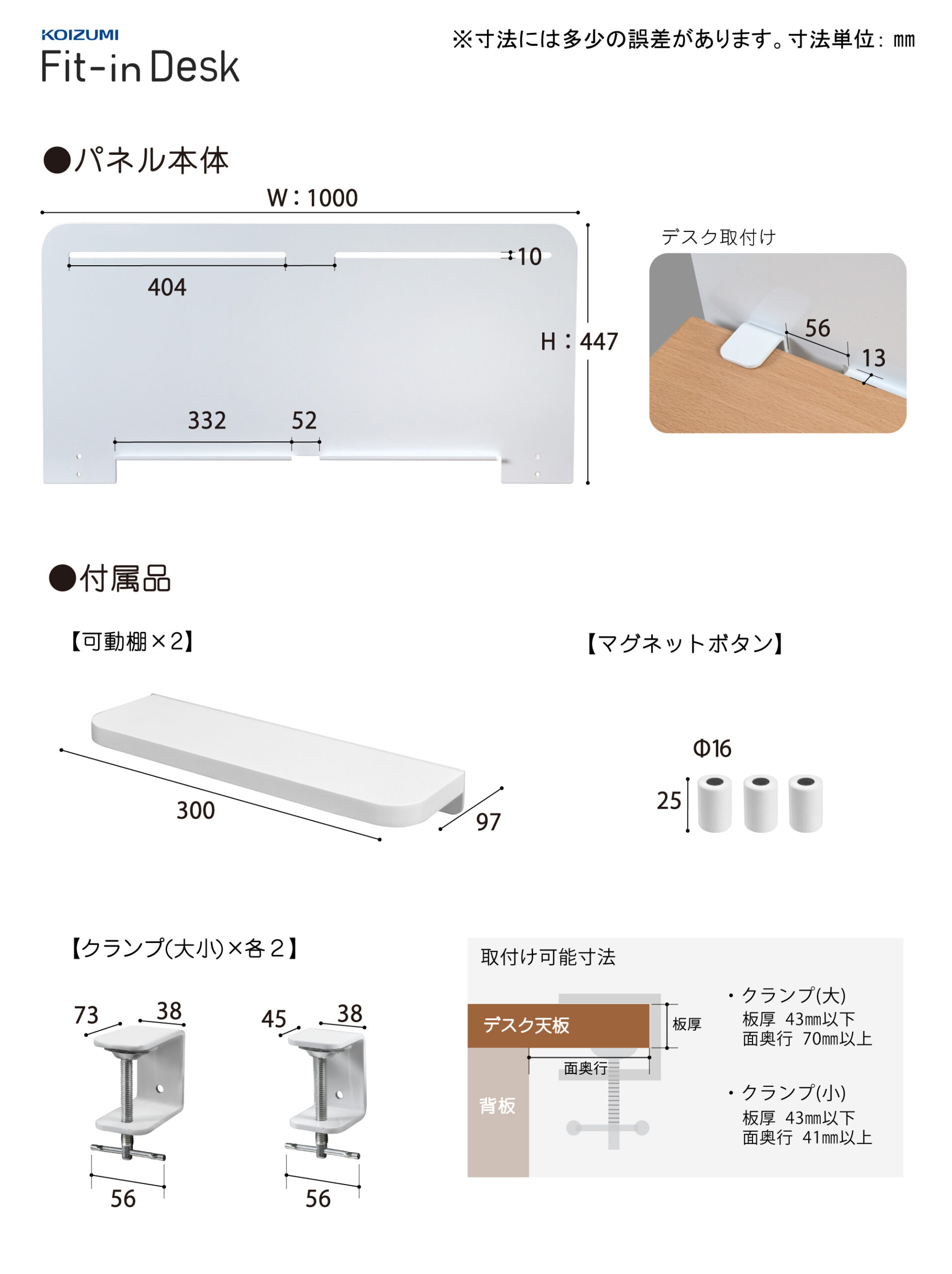 サイズ W1,000×D100(パネル厚み2㎜)×H445㎜