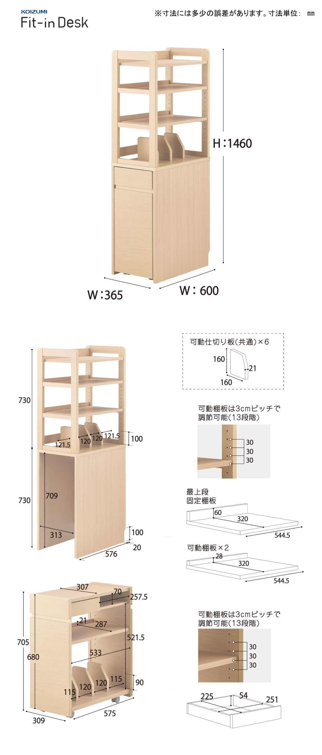特徴 可動棚×3
