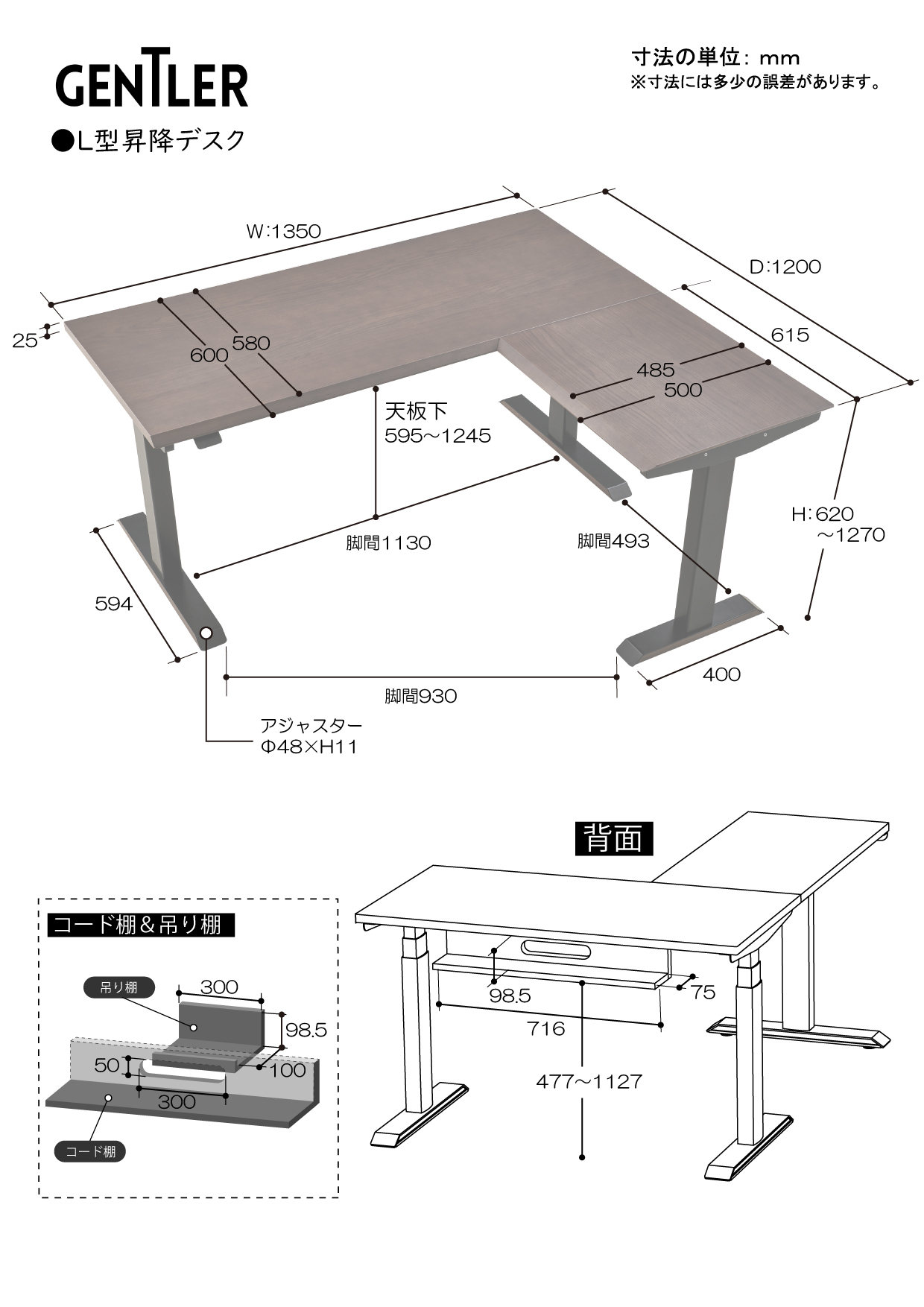 | サイズ | W1,350×D1,200×H620~1,270mm |