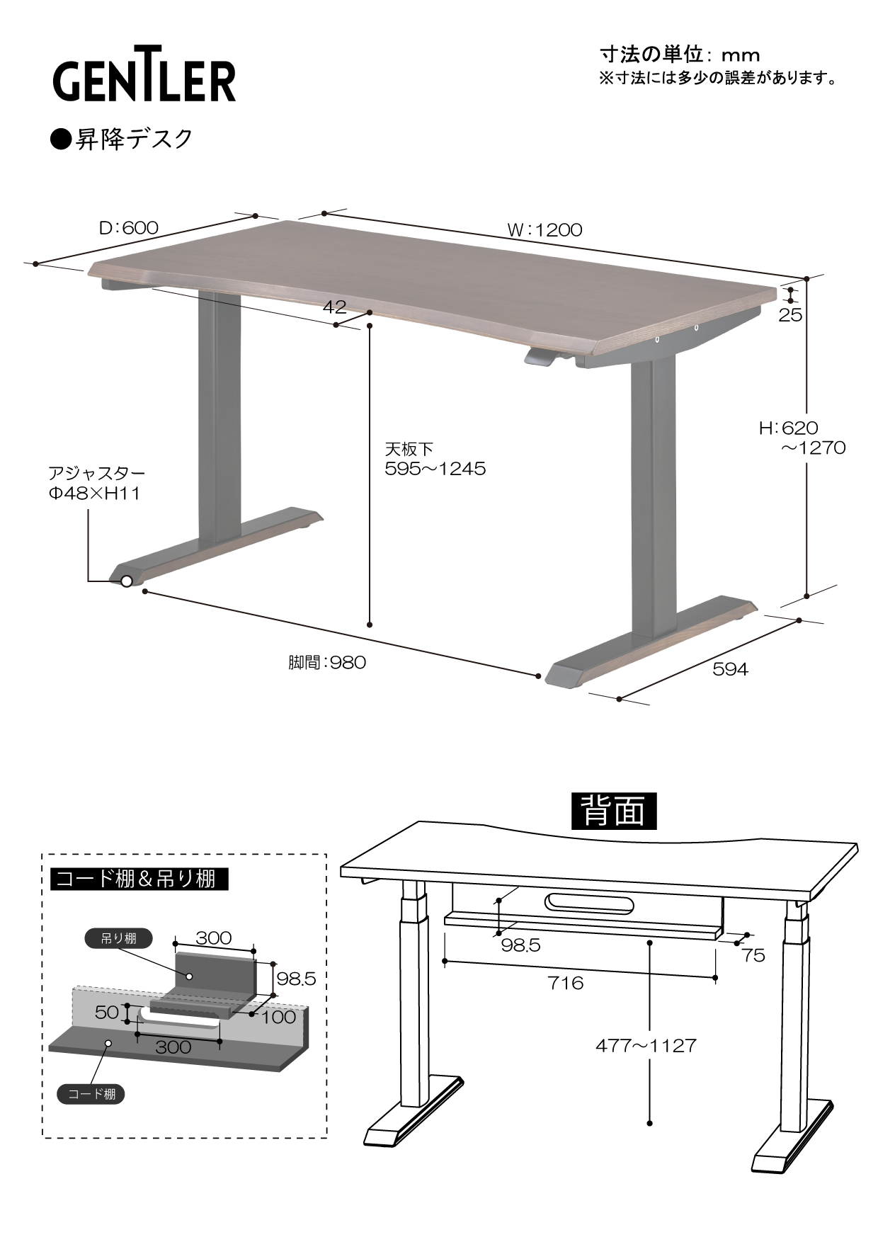 | 特徴 | ○65cmトロークの天板昇降可能 ○昇降スピード60mm/秒 ○衝撃検知機能 ○配線孔付き ○背面棚付き ○コントローラー機能 専用アプリ操作/高さメモリー/キーロック/リマインダー |